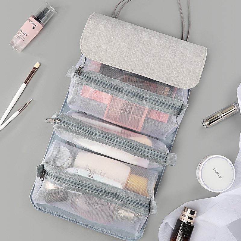 The bag has zipper closure, mesh cutting, and you can directly see through the items in the bag, very convenient.